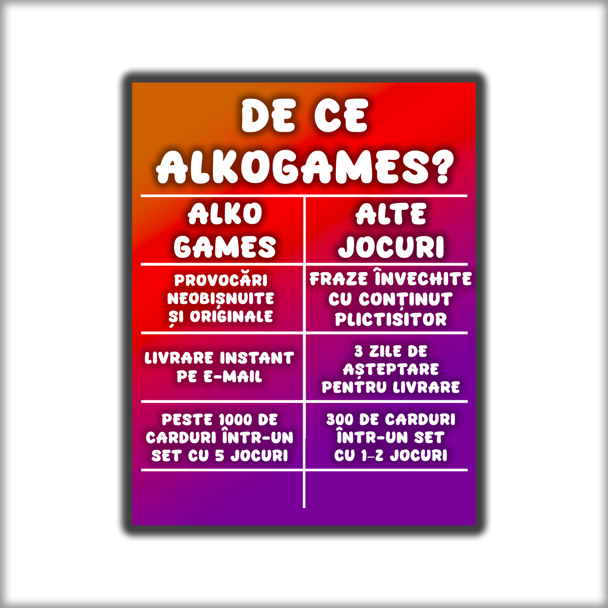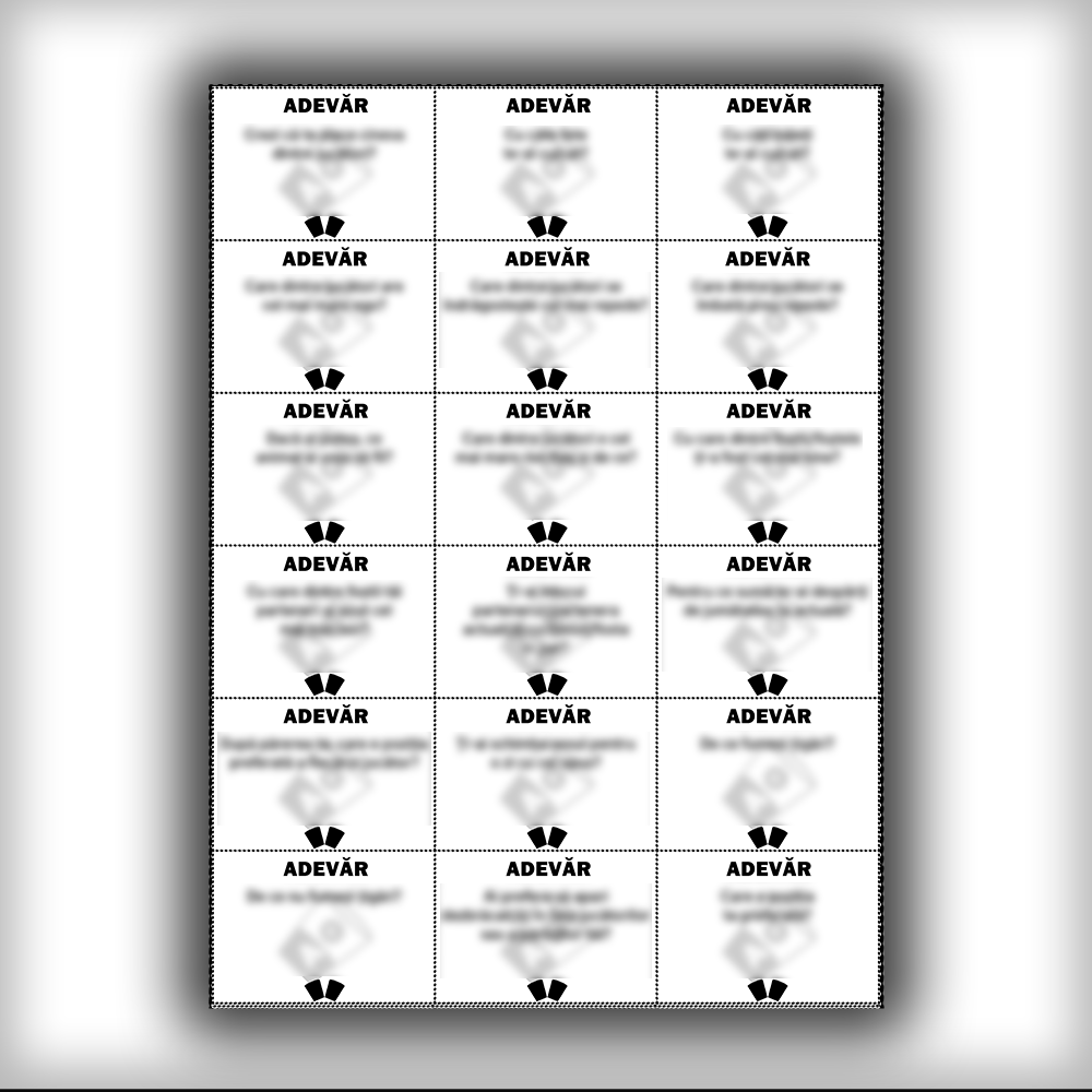 Vă prezentăm versiunea „Plus” a Ediției de Revelion 2025! În acest set veți găsi conținut extins al jocurilor noastre populare, astfel încât în ultima zi a anului nu vă veți plictisi. Această versiune a setului, pe lângă un număr mai mare de cărți, include fraze mai controversate și amuzante pe care nu le veți găsi în varianta de bază. Creăm jocuri de petrecere din 2022, avem o experiență uriașă și am vrut mereu să facem jocuri la care toată lumea se distrează, în primul rând noi înșine. Sperăm că vă veți distra de minune în această ediție specială a jocului nostru. Se ridică întrebarea finală…