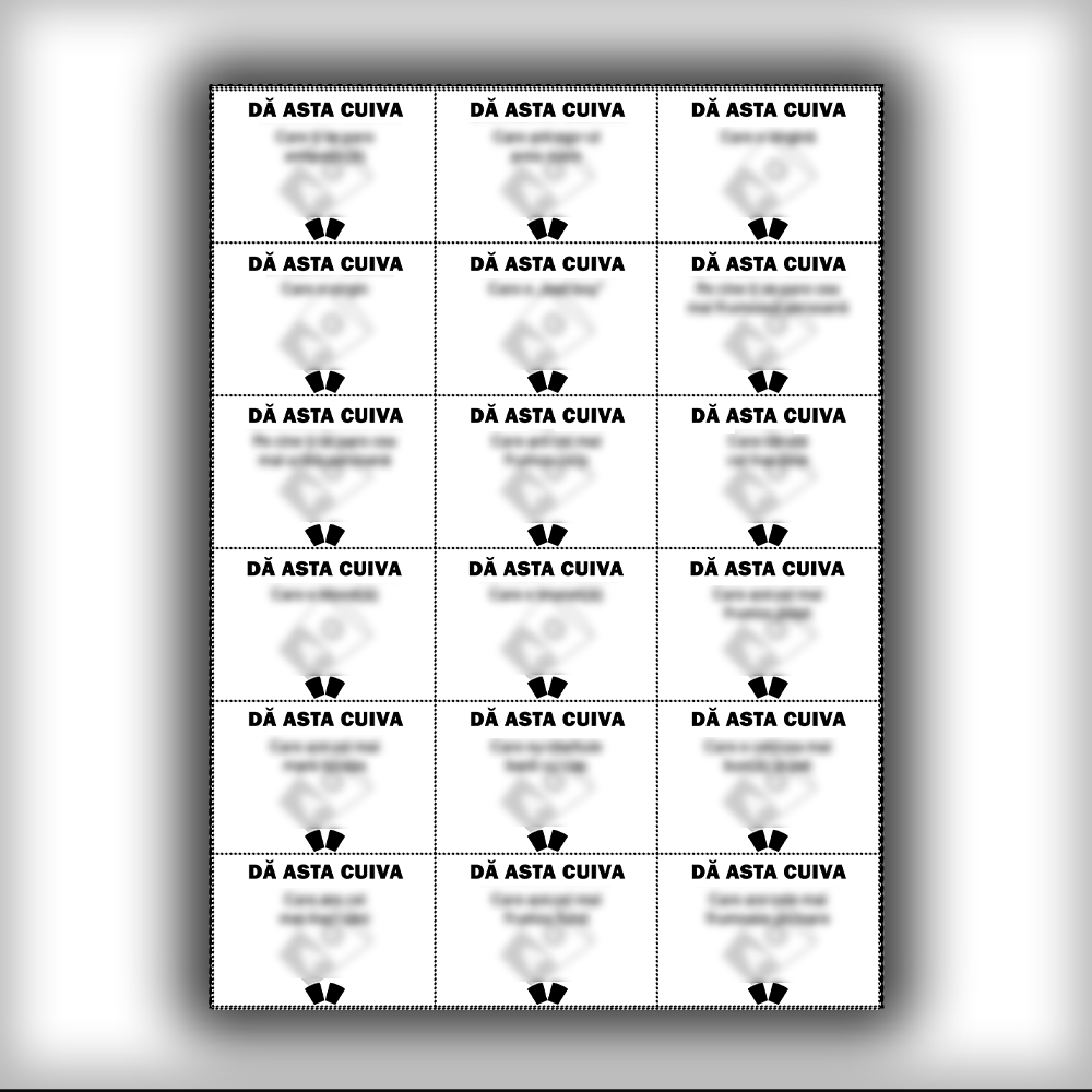 Po wydrukowaniu Twojej gry, weź nożyczki i zacznij ciąć kartkę wzdłuż wyznaczonych linii.
